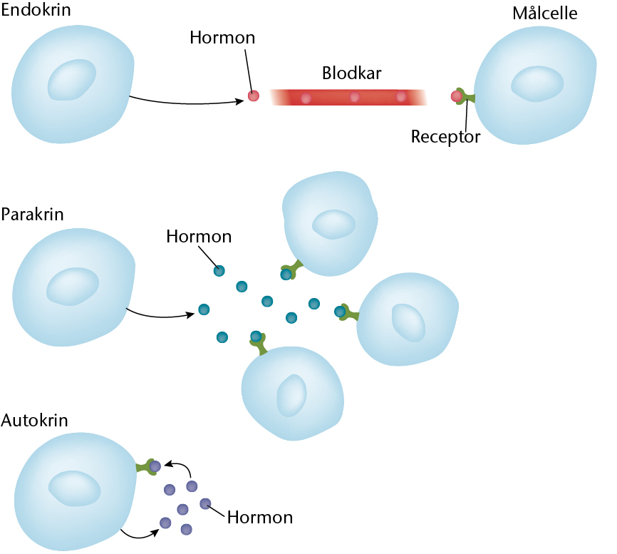 Myokiner sender signaler både a. endokrint, dvs. via blodet over lange afstande, b. parakrint, dvs. over korte afstande til naboceller og c. autokrint, dvs. signaler der påvirker sammemuskelfiber som udsendte signalet.