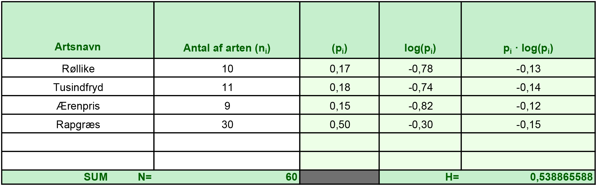 SE OGSÅ MATERIALER - SHANNON INDEKS REGNEARK