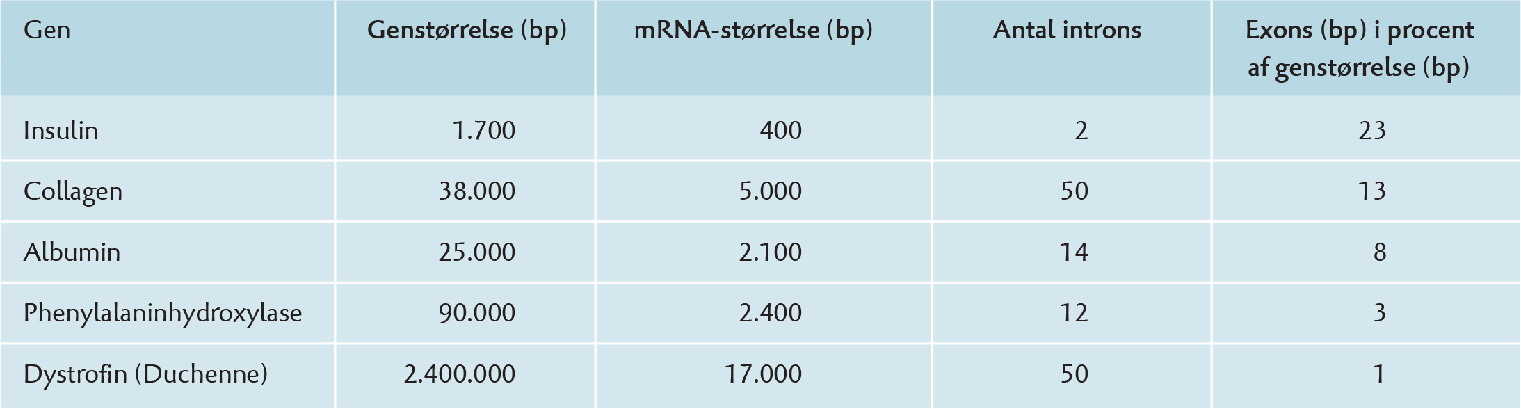 Data for udvalgte gener.