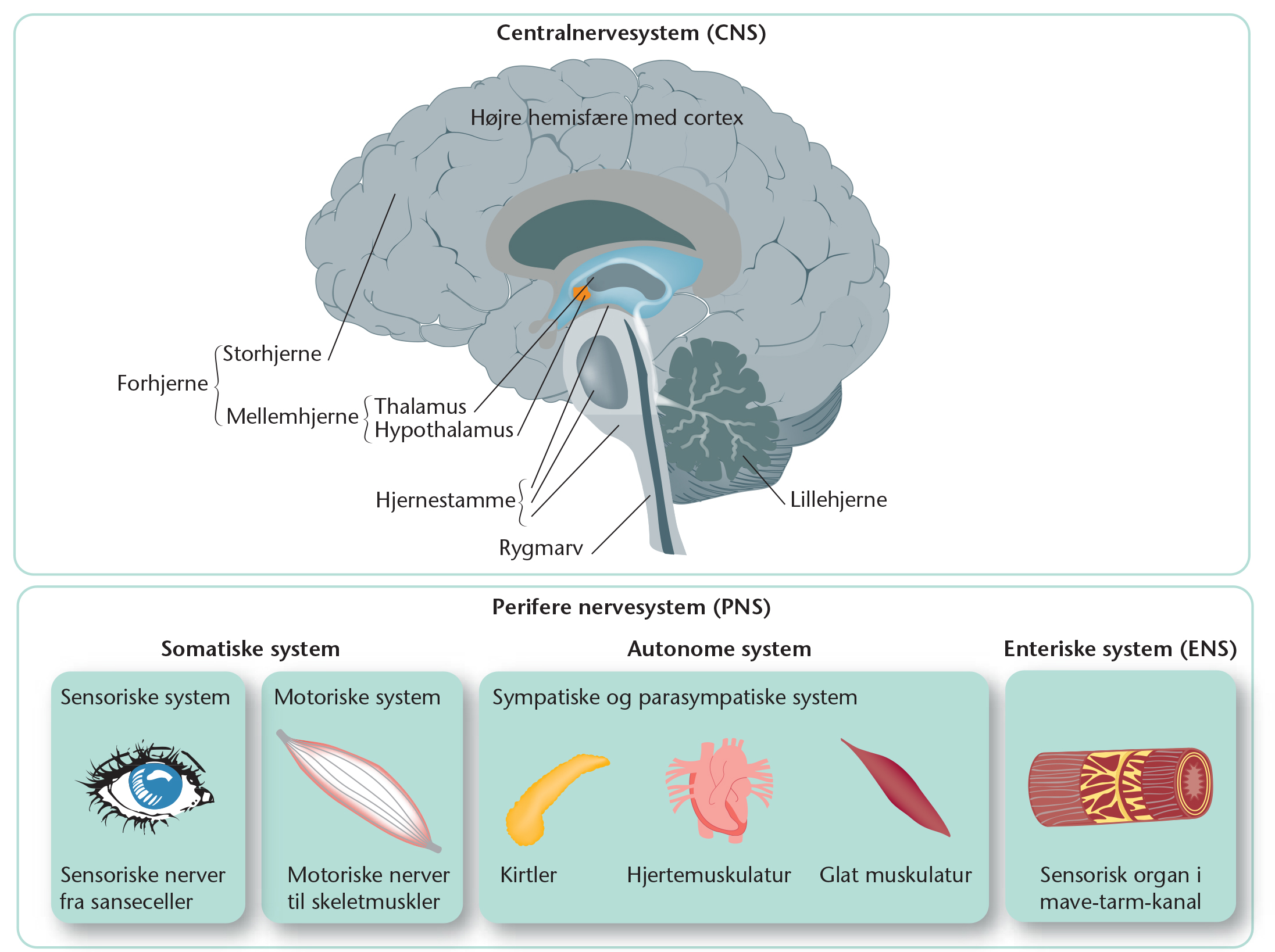 Nervesystemets inddeling.