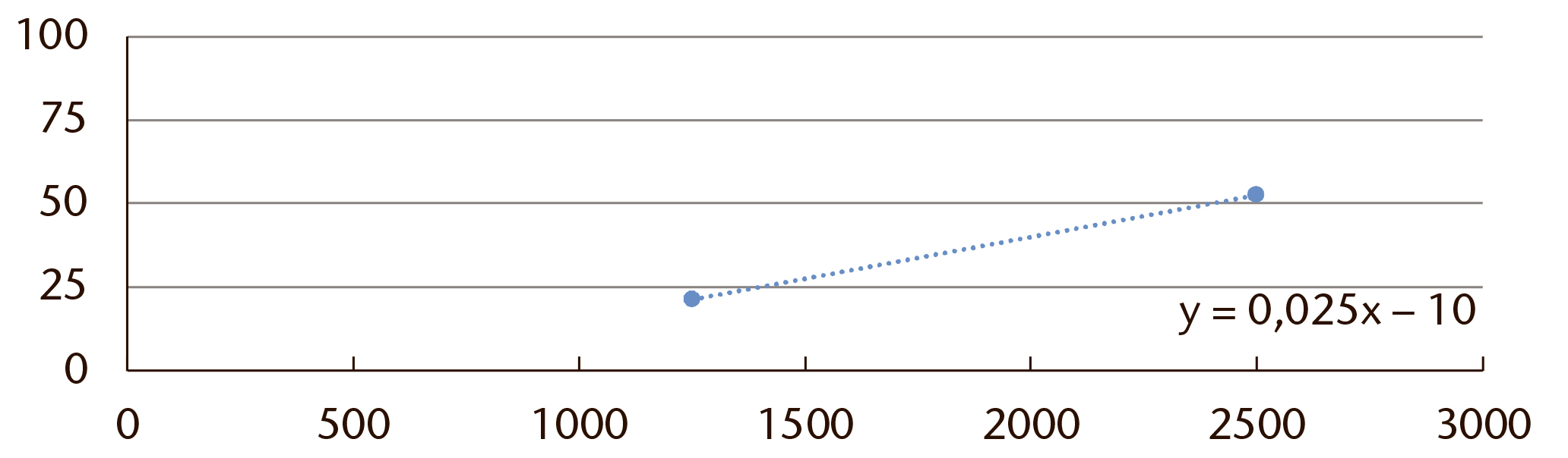 Graf med tilhørende forskrift for ligningen for ret linje.