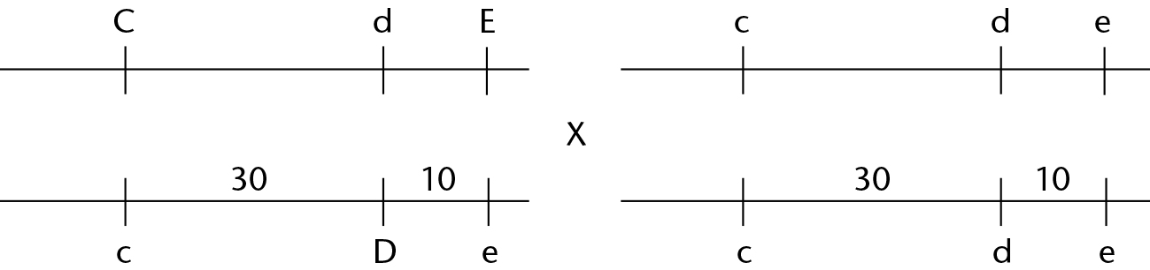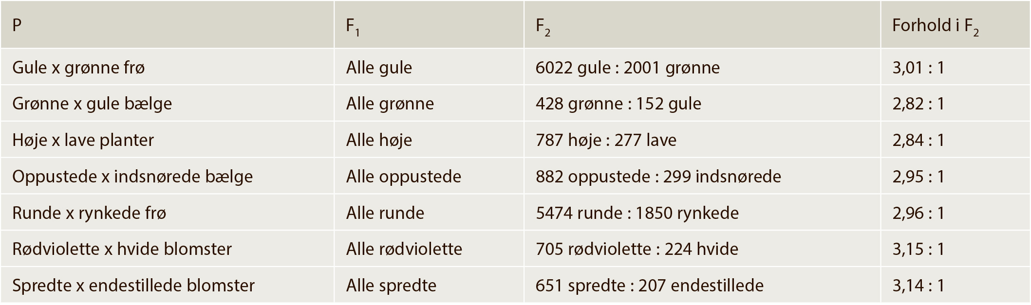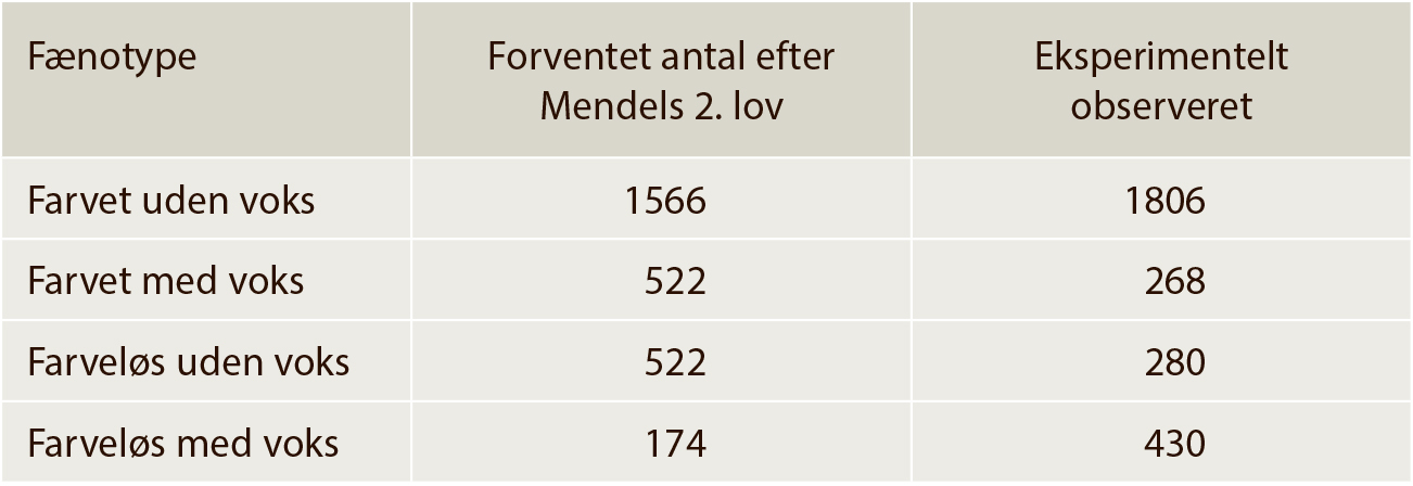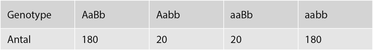 En forventet fordeling af fænotyper efter Mendels 2. lov.