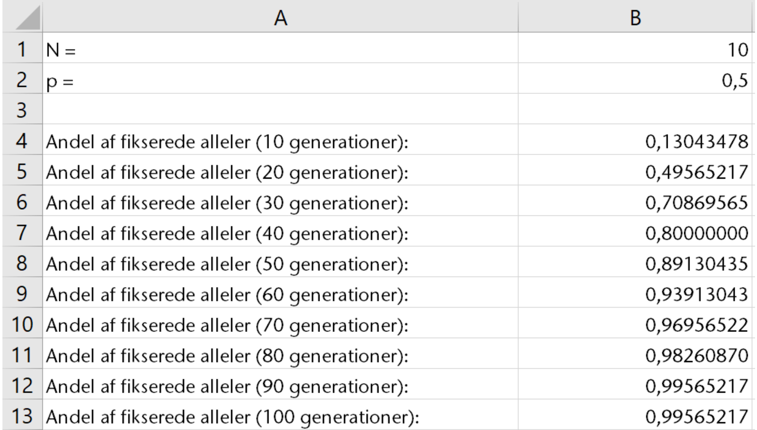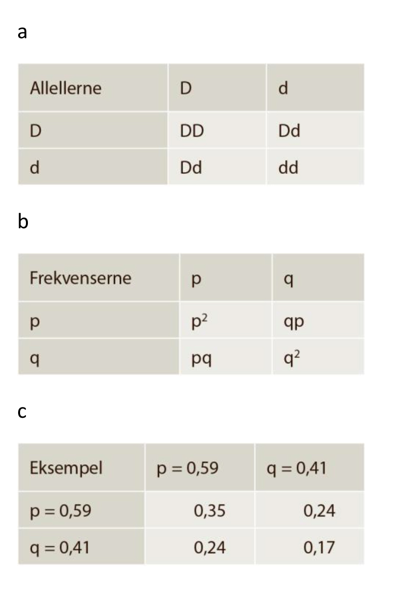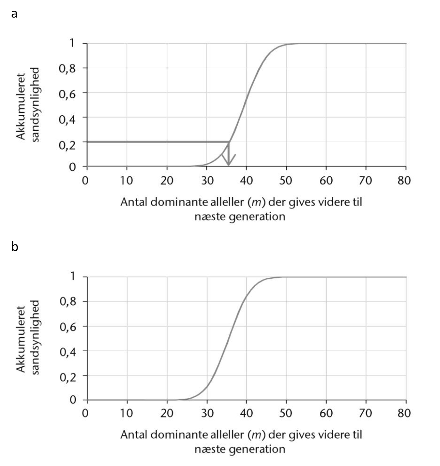 a. Ved tilfældig sandsynlighed kan man finde antallet af alleller der går videre til næste generation.