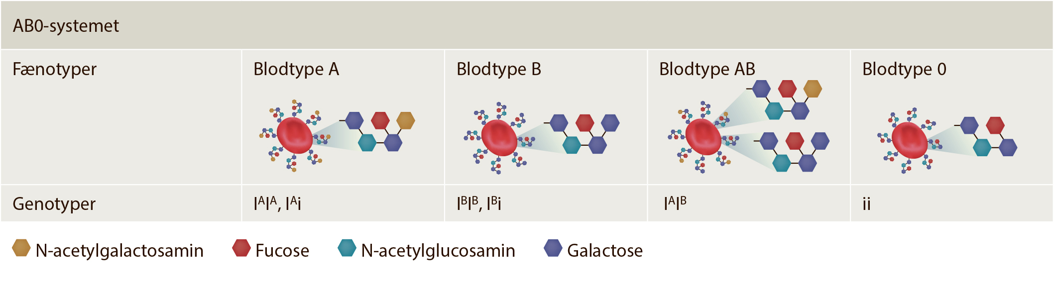 Fordeling af blodtyper i Danmark samt deres respektive genotyper.