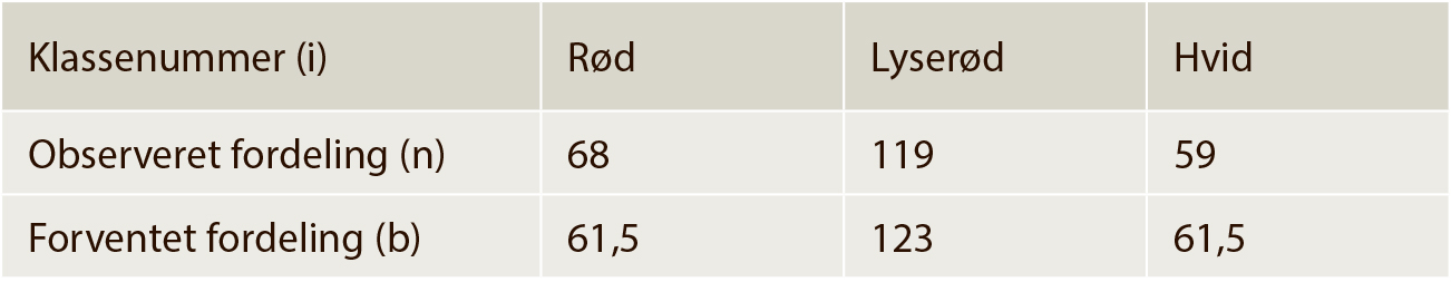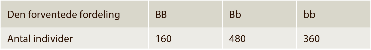 Den observerede og forventede fordeling ved udspaltningsforhold1:2:1.