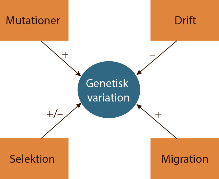 Den genetiske variation i en population forøges ved migrationer og mutationer.