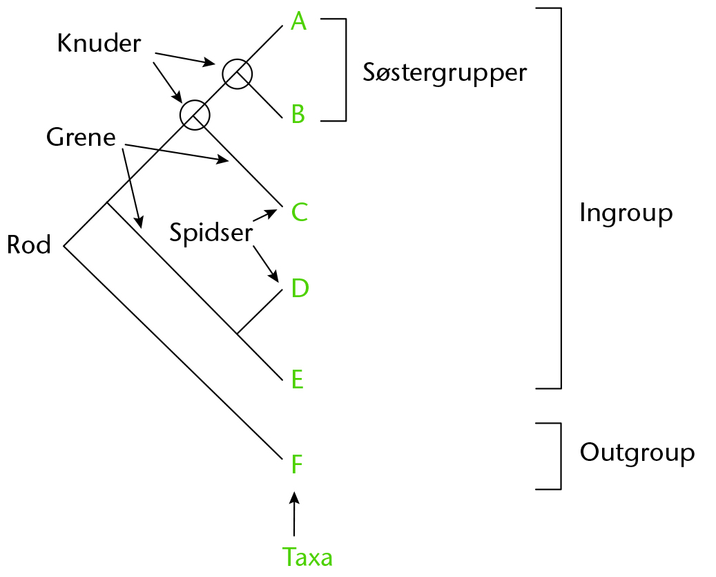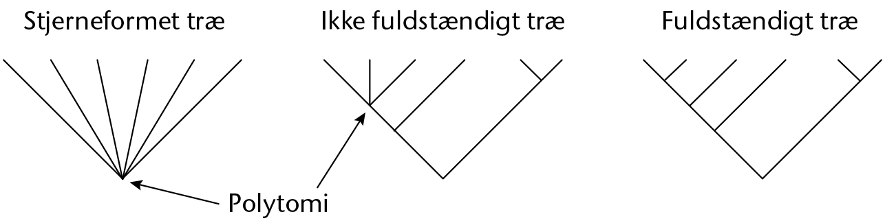 Stamtræ med de korrekte grenlængder og angivelse af p-afstande.