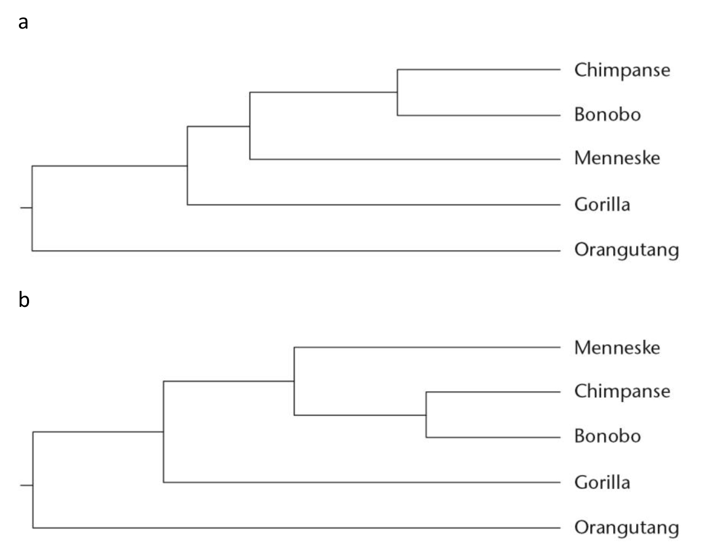 a. Udvalgte menneskeabers indbyrdes afstamningsforhold.