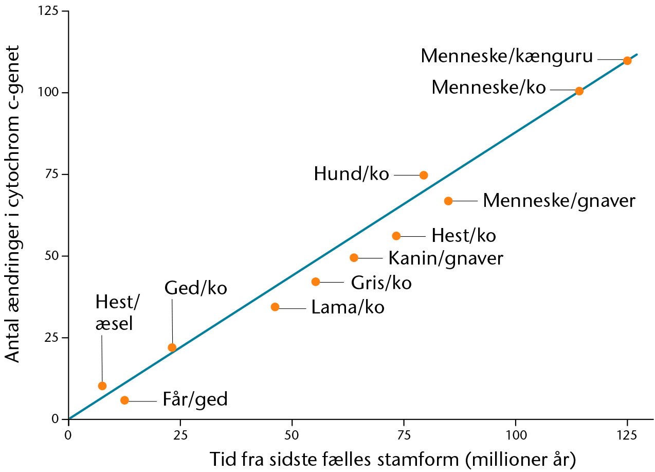 Den kendte alder på fælles stamformer mellem arter og antal ændringer i cytochrom c-genet.