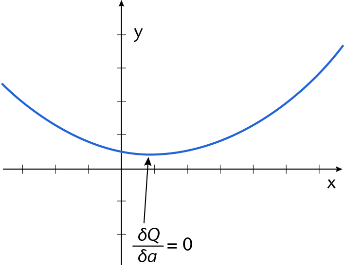 Hvis man differentierer et andengradspolynomium og den differentierede ligning sættes til 0,