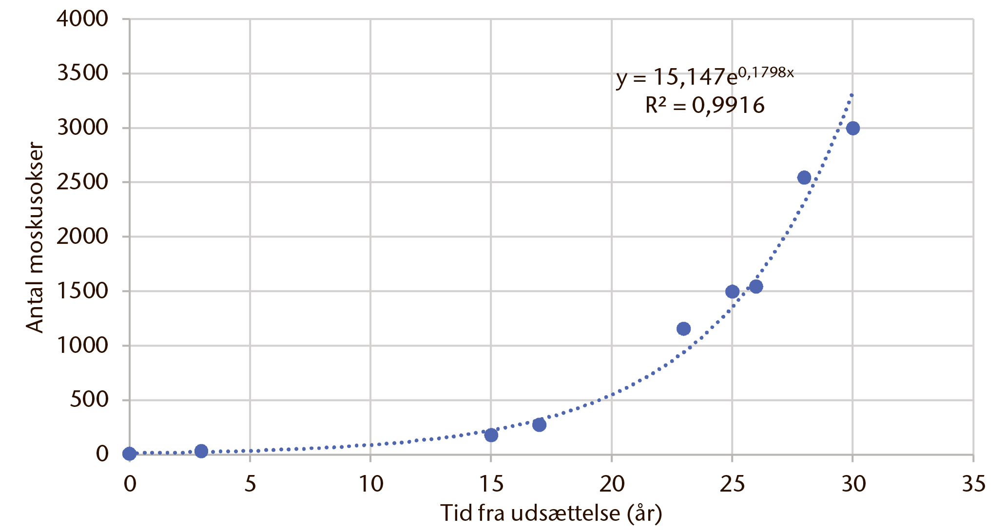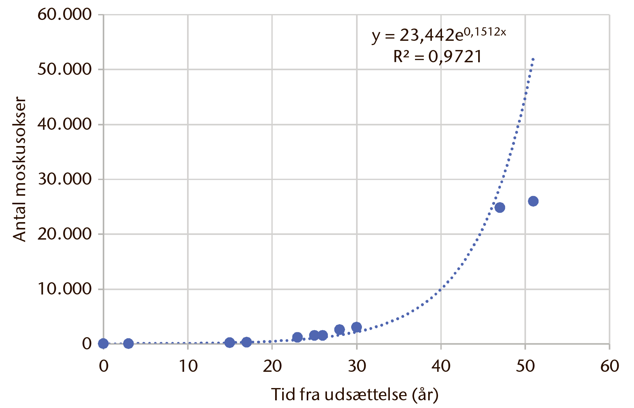 Udviklingen af moskusoksebestanden i Kangerlussuaq-området.