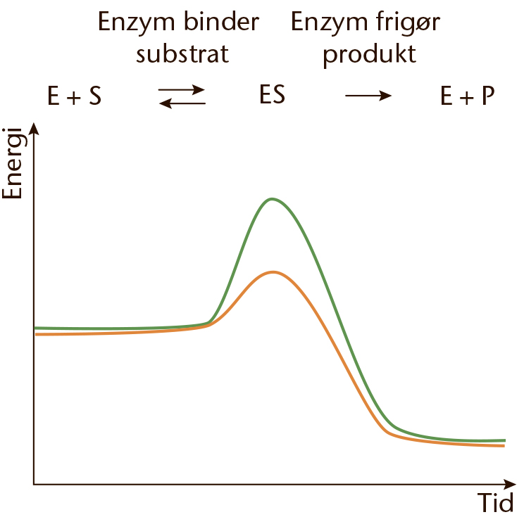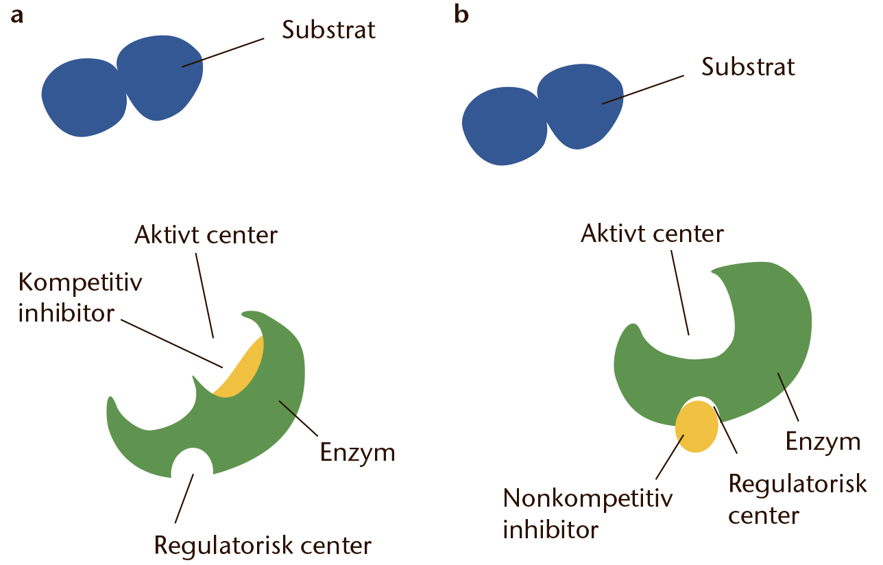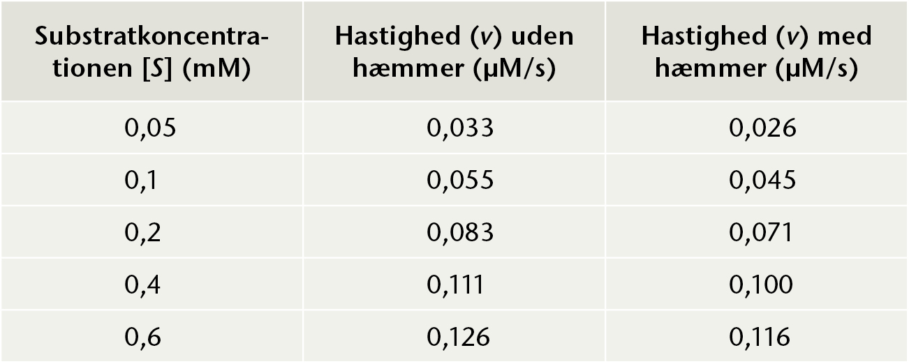 Hastighederne af en enzymkatalyseret proces med og uden hæmmere.