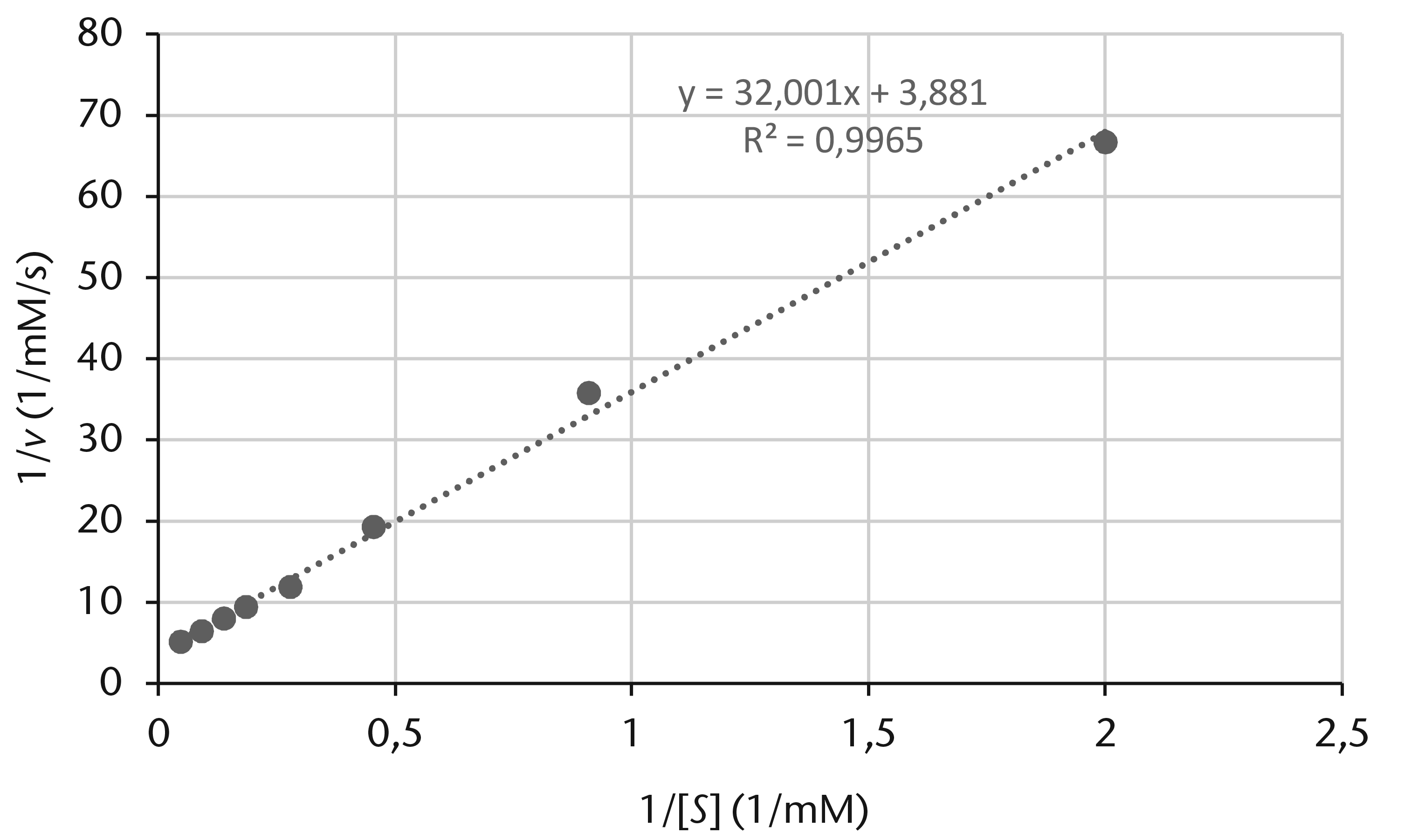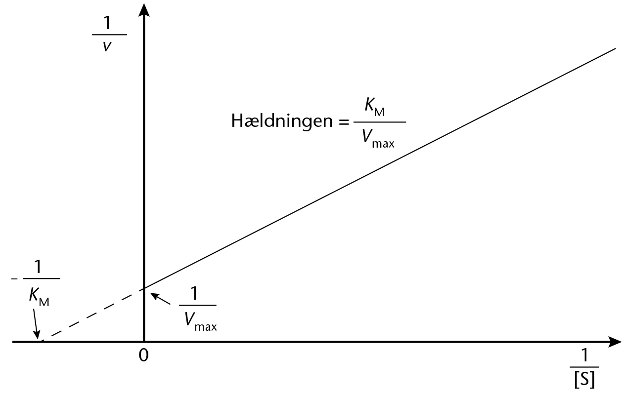 Lineweawer-Burk-plot til bestemmelse af Vmax og KM.