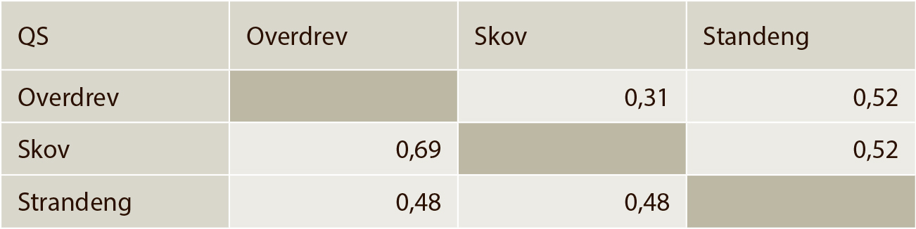Grafisk afbildning af Sørensen-indeks for standenge med forskellige græsningsforhold.