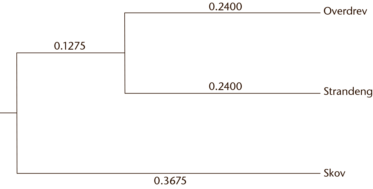 Dendogram der viser forskelle mellem forskellige lokaliteter, hvad angår plantesammensætning.