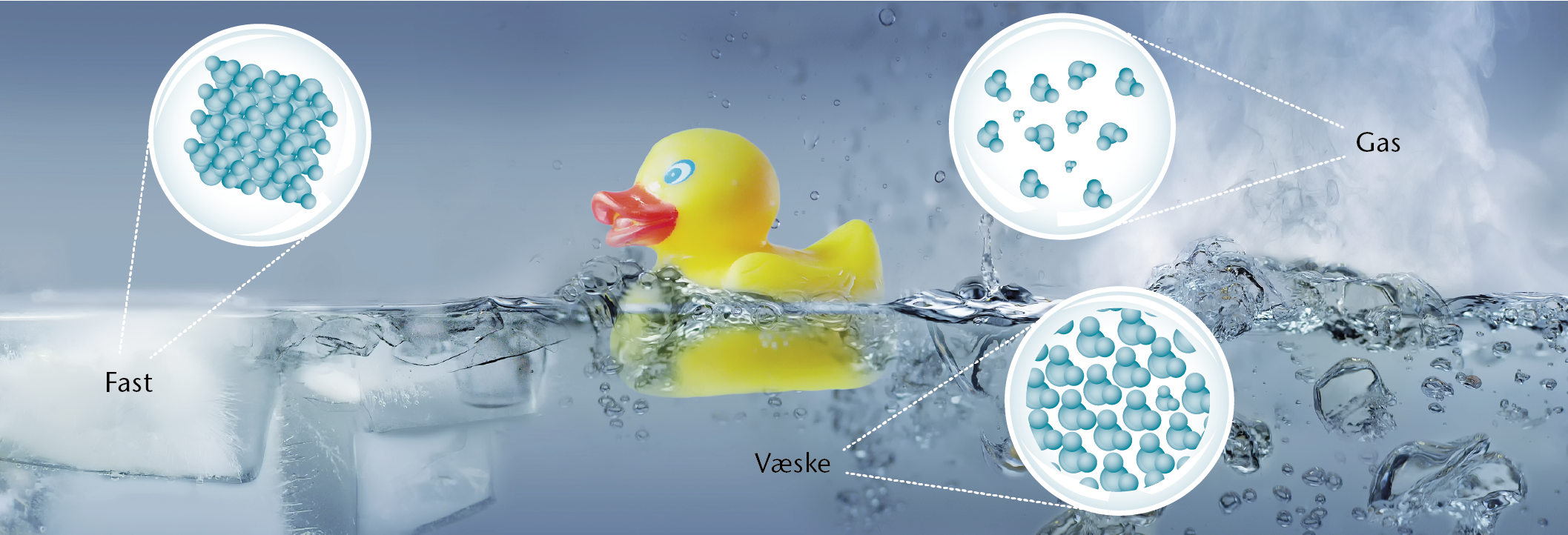 Vands tre tilstandsformer på makroniveau.