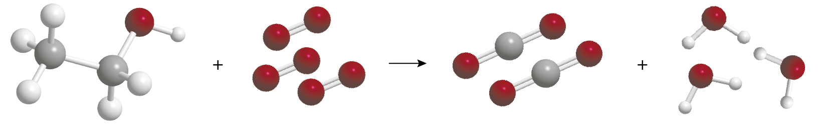 Afstemt reaktionsskema for ethanols reaktion med dioxygen.
