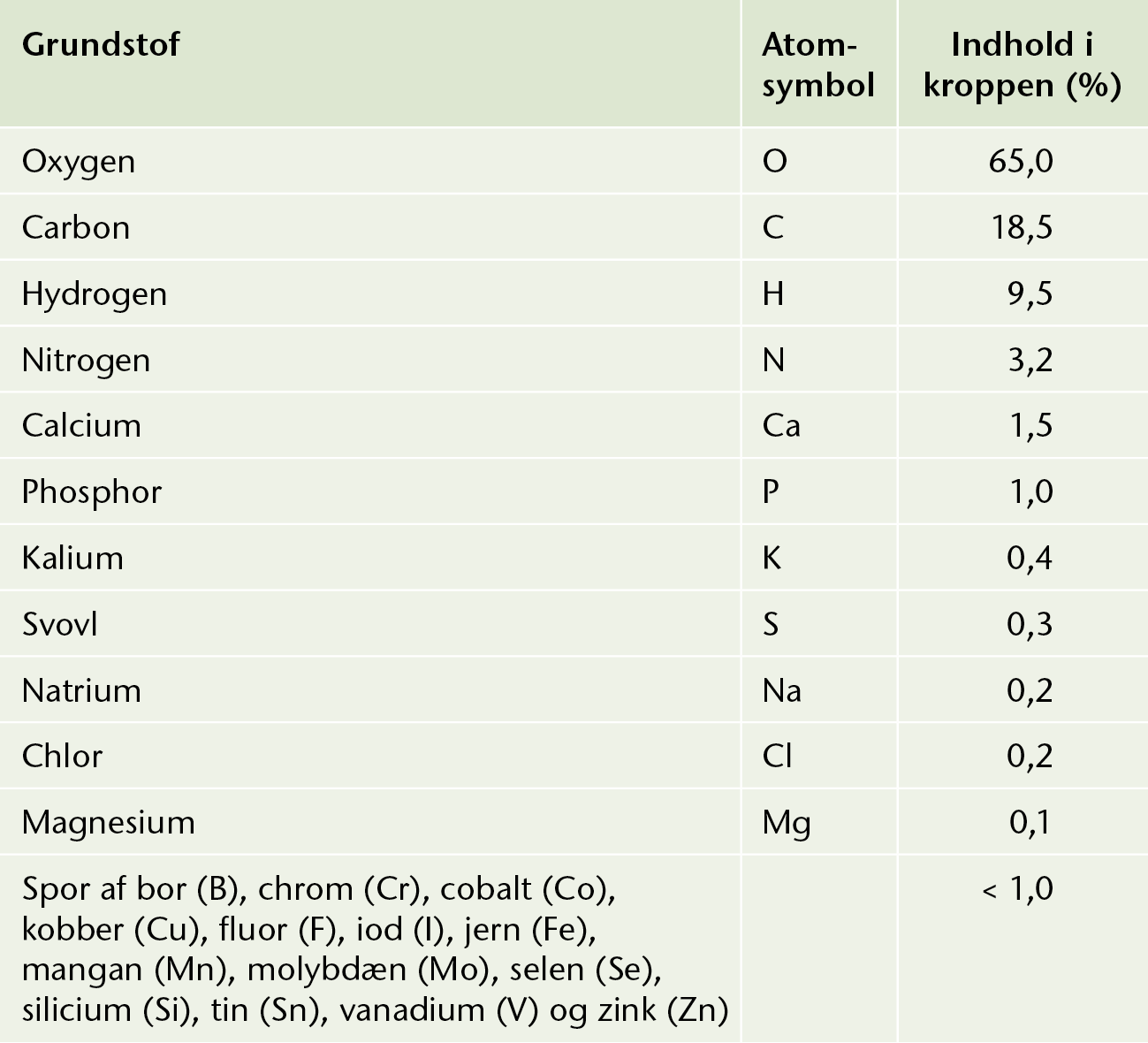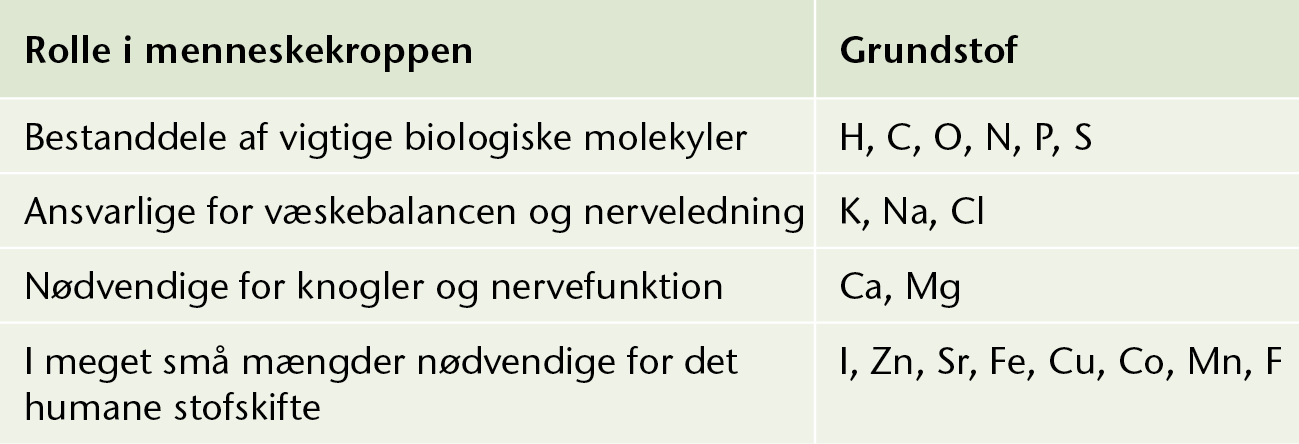 De vigtigste grundstoffer i menneskekroppen.