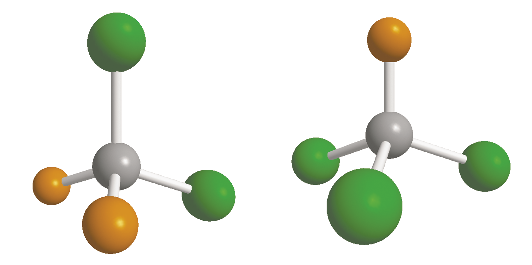 b. Molekylmodeller af CFC-11 og CFC-12.