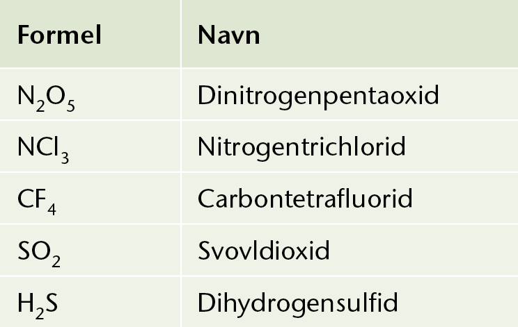 Eksempler på molekyler og deres oxidationstal.
