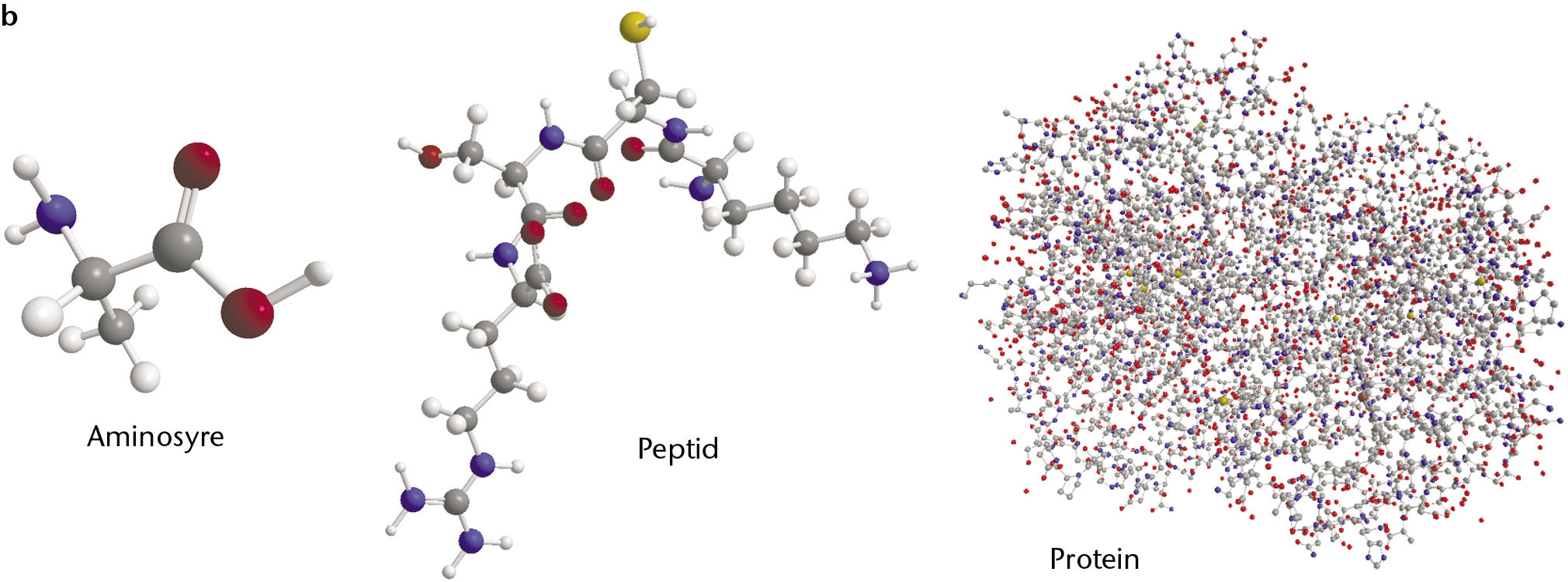 b. Molekylmodeller for et signalmolekyle med forskellige pH-værdier.