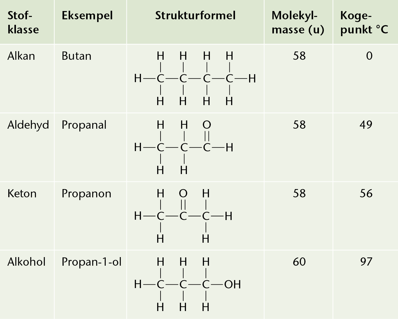 Smelte- og kogepunkter for udvalgte stoffer.