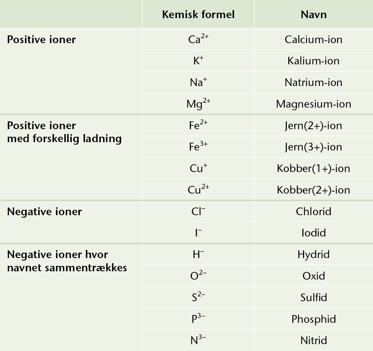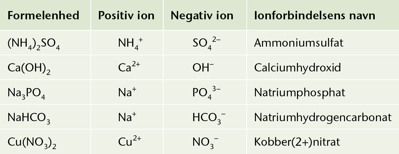 Eksempler på fleratomige ioner og deres oxidationstal.