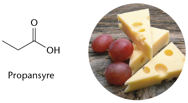 Emmentalerost får sine store huller pga. gæringsprocesser hvor bl.a. propansyre omdannes.
