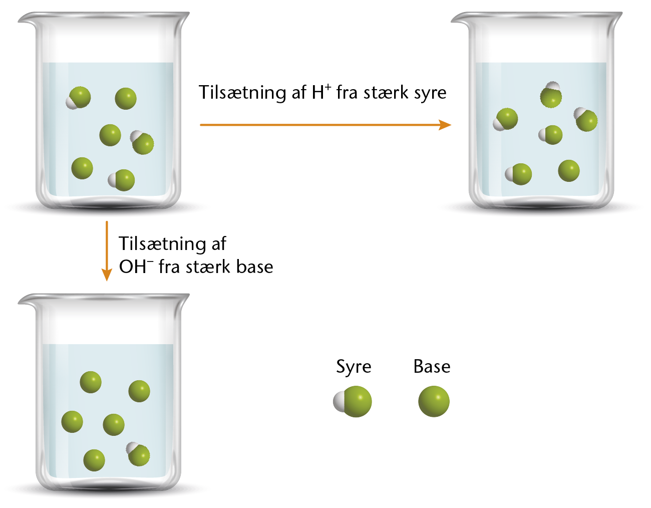 Påvirkning af syre-base-ligevægt ved tilsætning af stærk syre eller base.