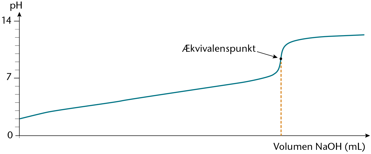 Titreringskurve for en stærk base (NaOH/KOH) med stærk syre (HCl).