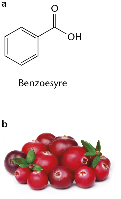 b.Tyttebær og tranebær indeholder benzoesyre.