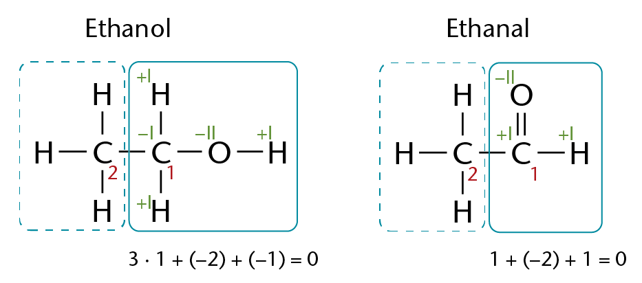 Strukturformler for ehtanol og ethanal.