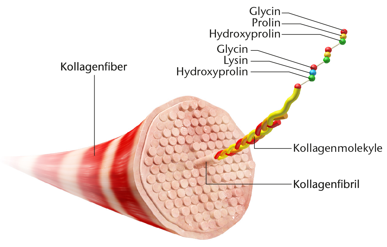 Opbygningen af en kollagenfiber.