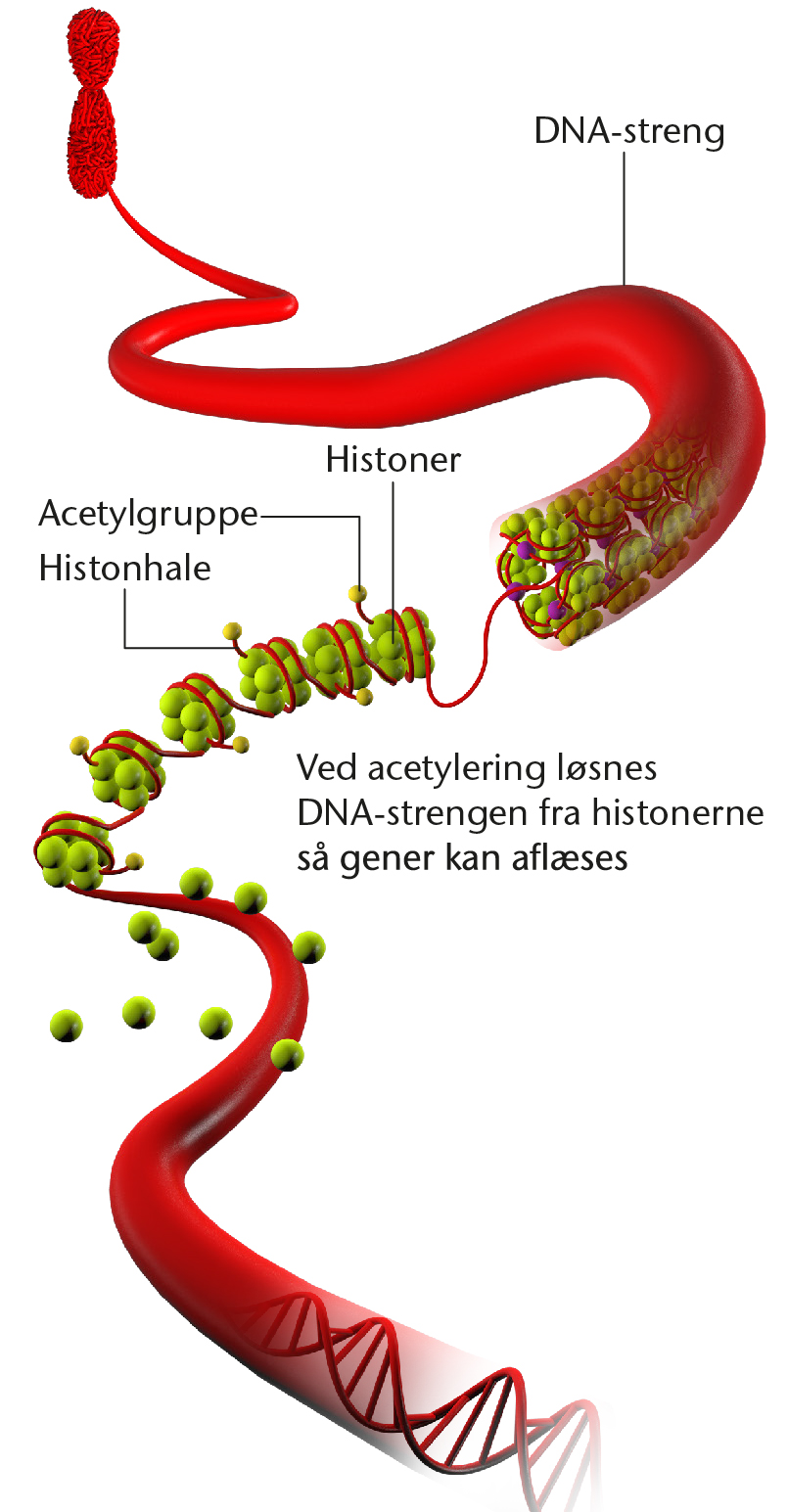 Genudtrykket er bl.a. bestemt af acetylering af histoner.