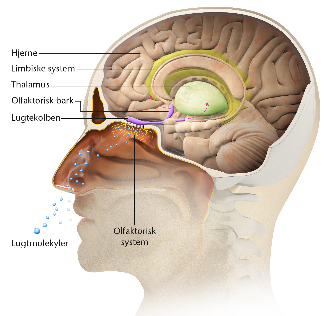 Forbindelse fra det olfaktoriske system til det limbiske system.