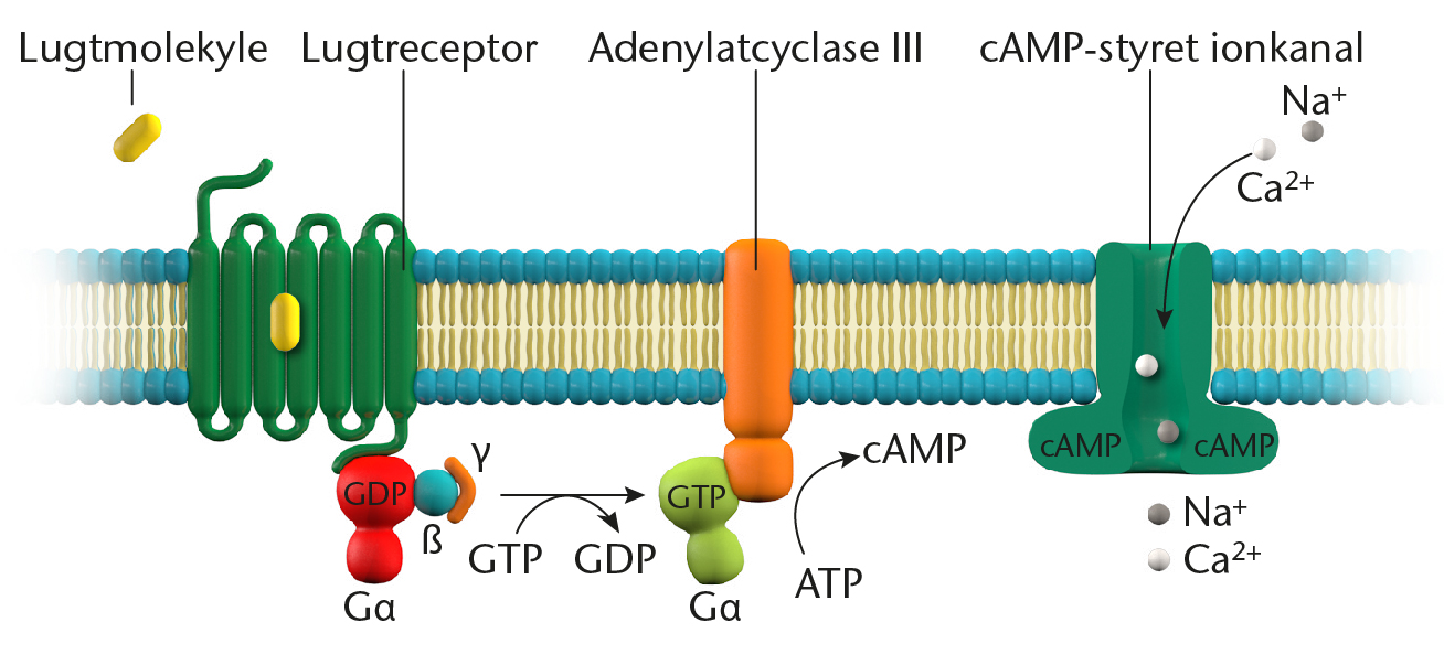 Lugtstoffer stimulerer receptorer på sensoriske celler, så lugten opfattes.