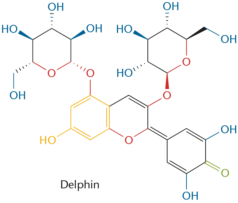 Stregformel for delphin (delphinidin-3,5-diglycosid).