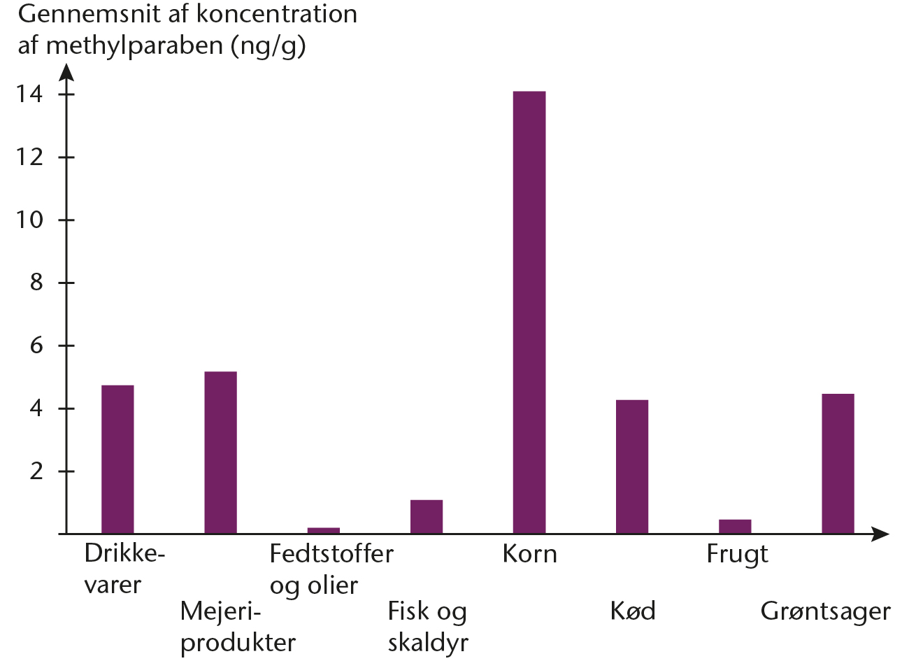 Koncentrationen af methylparaben i udvalgte fødevarer fra det amerikanske marked.