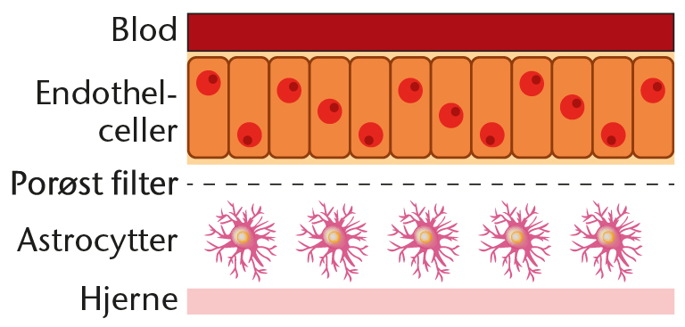 Model af blod-hjerne-barrieren.