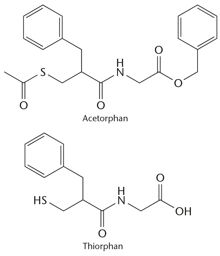 Lægemidlet Acertorphan og det aktive stof thiorphan.