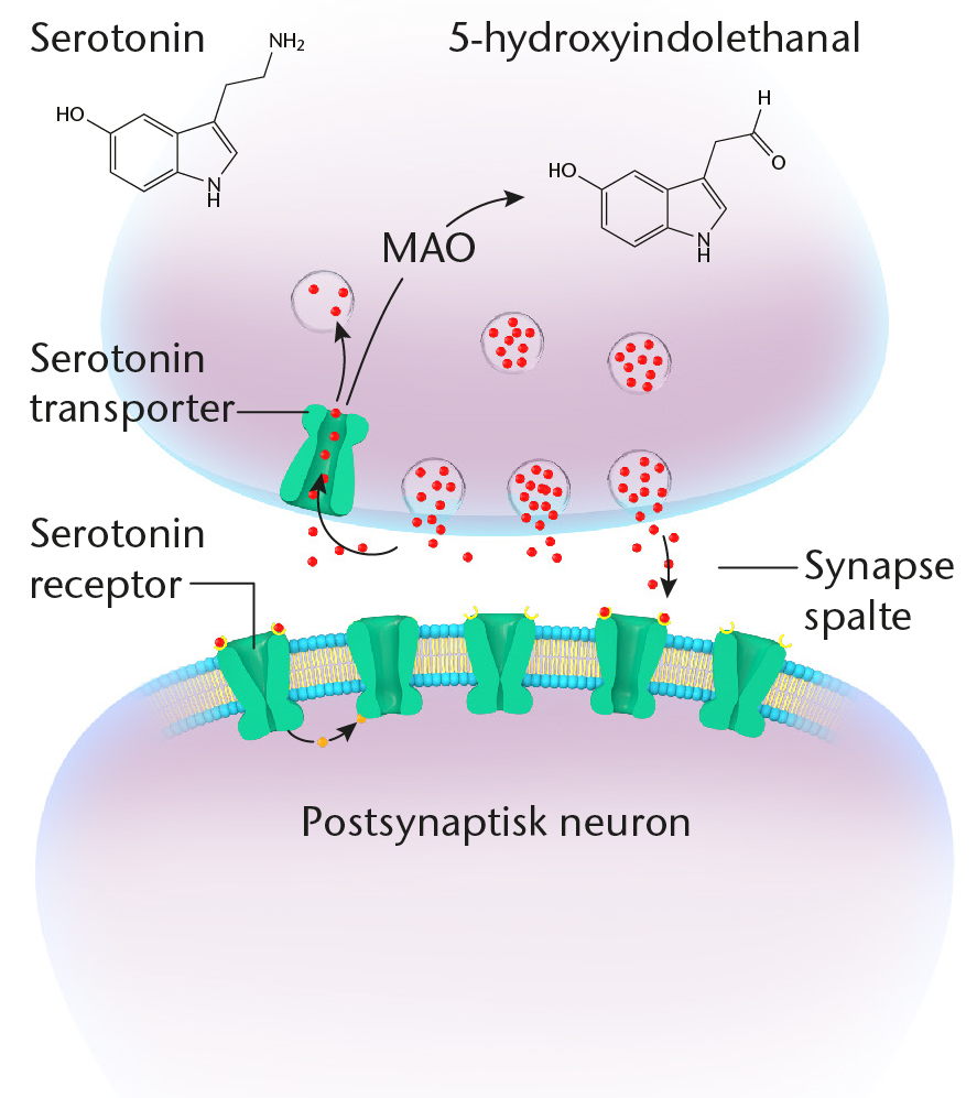 Synapse med serotoninproducerende nervecelle.