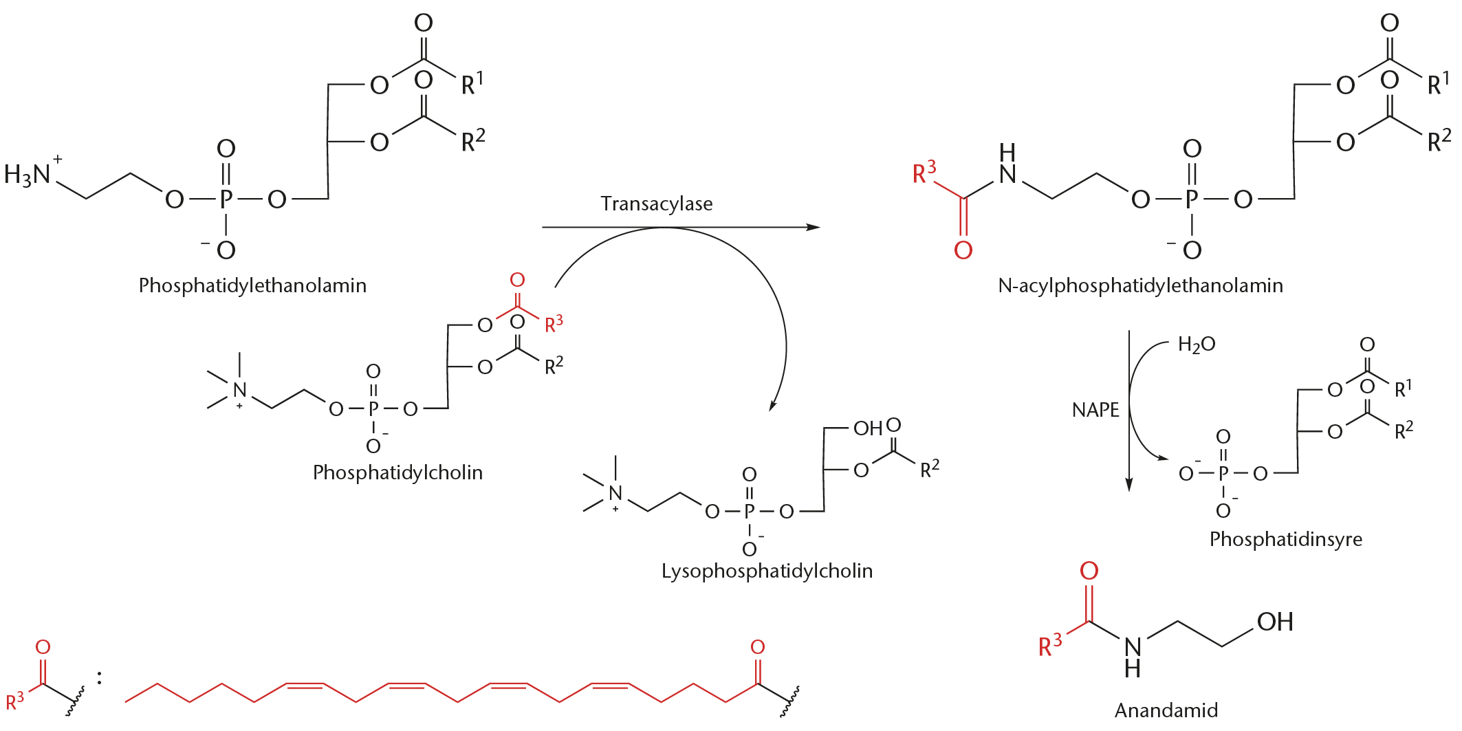 Stregformler for anandamid og 2-arachidonoylglycerol.