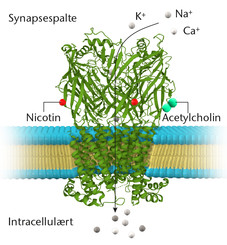 Nicotin-acetylcholinreceptoren består af fem polypeptidkæder.