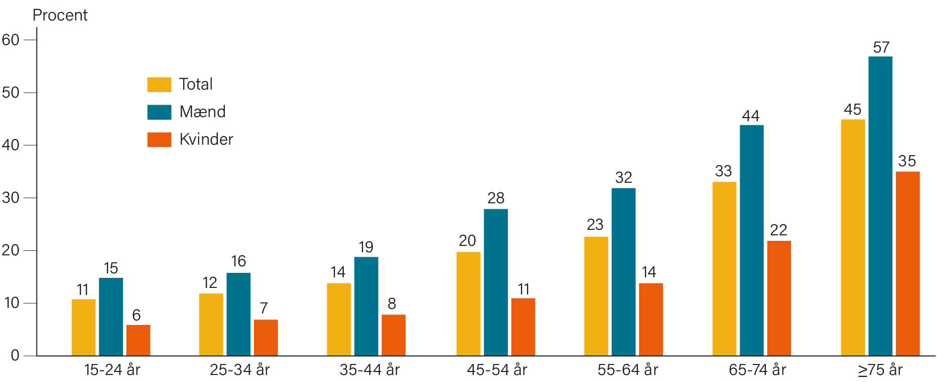 Antal personer der er blevet behandlet for kønsvorter forårsaget af HPV pr. 1.000 personer i forskellige aldersgrupper. I 2009 blev HPV-vaccinen en del af det danske børnevaccinationsprogram til piger på 12-14 år. Drengene kom med i vaccinationsprogrammet i 2019.